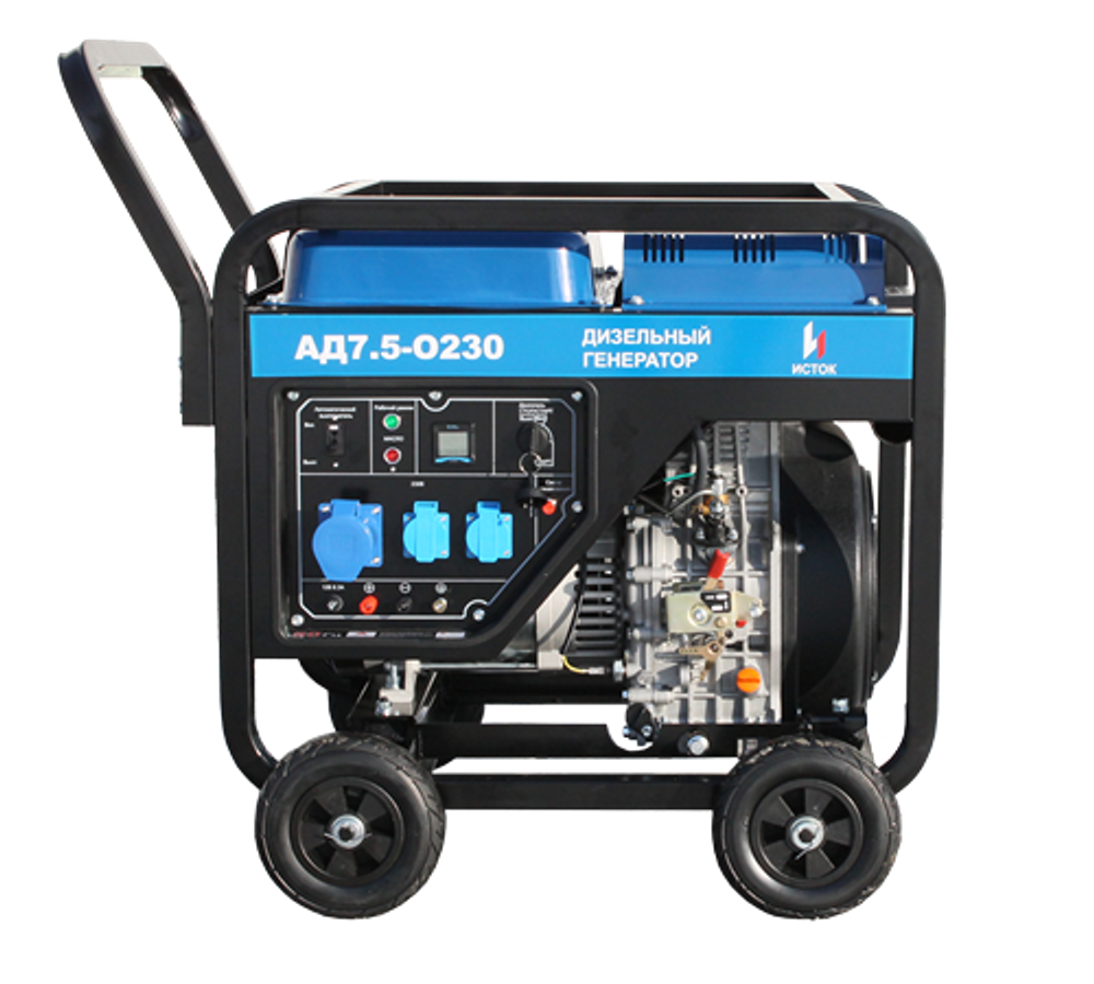 Дизельный генератор ИСТОК АД8-О230-ВМ131Э - однофазный дизельный генератор переменного тока номинальной мощностью 8 кВт предназначен для основного и резервного энергоснабжения коттеджей, малых торговых площадей, складов, а также для проведения ремонтных работ, питания ручного инструмента, насосов.