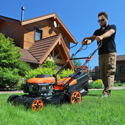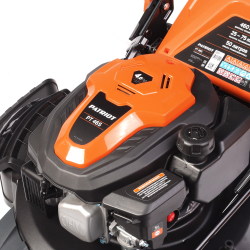 Мощная бензиновая самоходная газонокосилка РТ 46S с изменяемой высотой скашивания предназначена для срезания и сбора травы на ровной площади малых и средних приусадебных участках. Возможна работа в трех режимах: сбор травы в травосборник, боковой выброс травы, режим мульчирования. Газонокосилку отличает легкий запуск, высокая производительность и простота в обслуживании. Складная рукоятка, съёмный травосборник и компактный размер позволяют легко транспортировать и хранить газонокосилку. Для облегчения работы газонокосилка оснащена приводом на колеса. Корпус косилки оснащен штуцером для подключения шланга - для быстрой очистки внутренней части деки после работы. В комплект поставки входит приспособление для мульчирования.