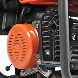 Оснащен двигателем с верхним расположением клапанов [OHV], что значительно увеличивает ресурс, снижает выхлоп и уровень шума. Надежный регулятор напряжения AVR и медная обмотка альтернатора позволяют выдерживать кратковременные 3х кратные перегрузки для использования с мощным электроинструментом. Датчик контроля масла исключает запуск и работу генератора при отсутствии или низком уровне масла в картере.