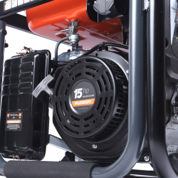 Мощный бензиновый генератор с возможностью подключения блока автоматики, применяется в качестве резервного или автономного источника питания. Вместительный бак и экономных расход топлива обеспечат до 10 часов беспрерывной работы. Двигатель "Hemi-Head" гарантирует лучшее сгорание топлива, выдает больше мощность по сравнению с обычным OHV двигателем. Надежный регулятор напряжения AVR и медная обмотка альтернатора позволяют выдерживать кратковременные 3х кратные перегрузки для использования с мощным электроинструментом. Сварная рама и утопленная панель управления защищают элементы управления от механических повреждений. Розетки защищены от попадания пыли и влаги.