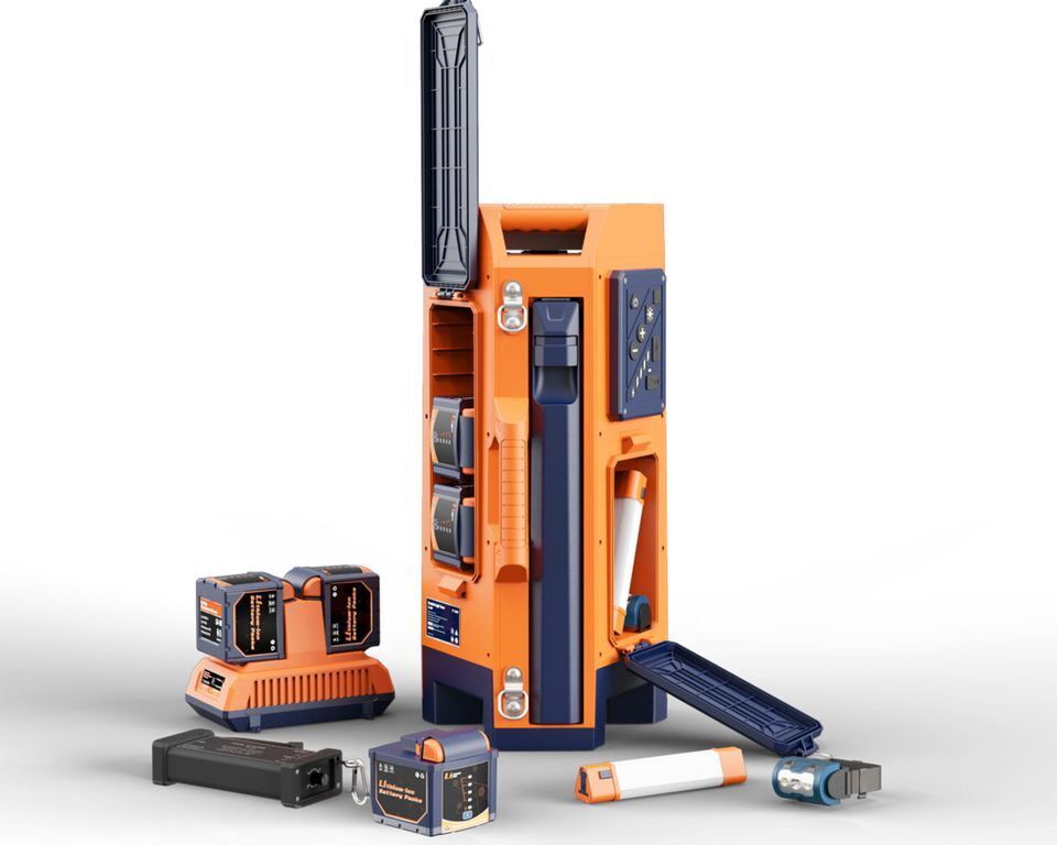 Характеристики Лампа-светодиодная 15 000 люмен; Максимальная высота подъема - 2,2 метра; Площадь освещения - 1100 кв. м.; Время работы на одном аккумуляторе более 10 часов; Установка до 3-х аккумуляторных батарей одновременно; Габариты при транспортировке - 68x37x38 см; Вес - 10,5 кг;