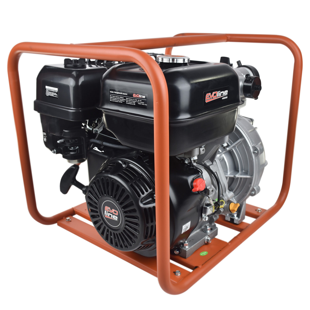 Водяная помпа EVOline HG 30 – бензиновая высоконапорная мотопомпа с мощностью двигателя 12,5 л.с. Силовым агрегатом данной модели является двигатель ZONGSHEN GB420. Максимальная производительность водяного насоса составляет 750 л/мин, а высота всасывания - 8 м. Размер твердых частиц не должен превышать 7 мм.