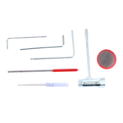 В комплекте поставки: емкость для смешивания топливной смеси, воронка с топливным фильтром, напильник для заточки цепи, необходимый для обслуживания набор инструмента.