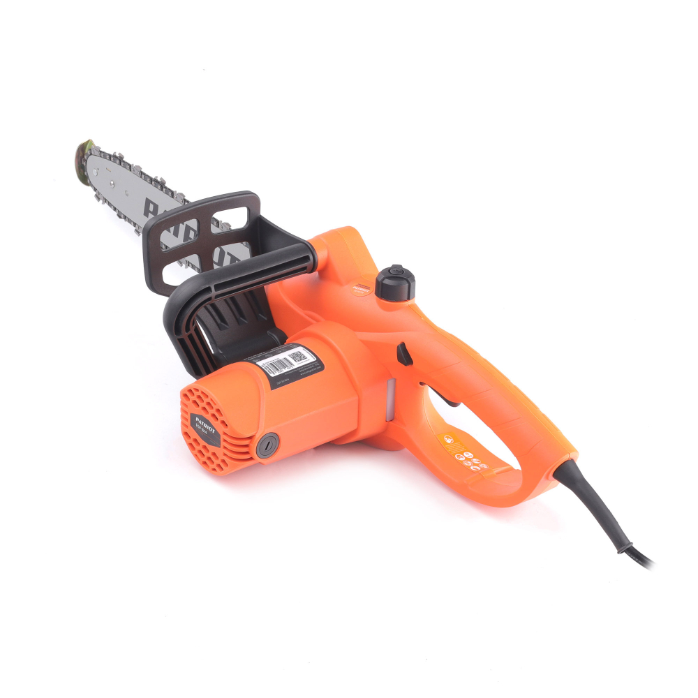 Продолжительная комфортная работа обеспечивается благодаря малому весу пилы и низкому уровню шума. Техническое обслуживание практически не требуется, пильная цепь смазывается автоматически. Для безопасной работы пила оснащена предохранителем клавиши старта и щитком для защиты рук. На рукоятке предусмотрена скоба крепления сетевого кабеля.