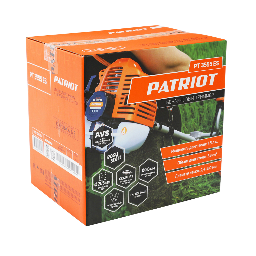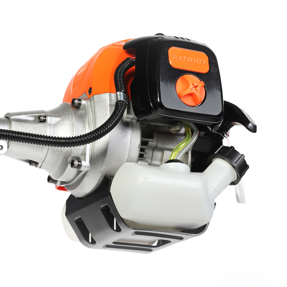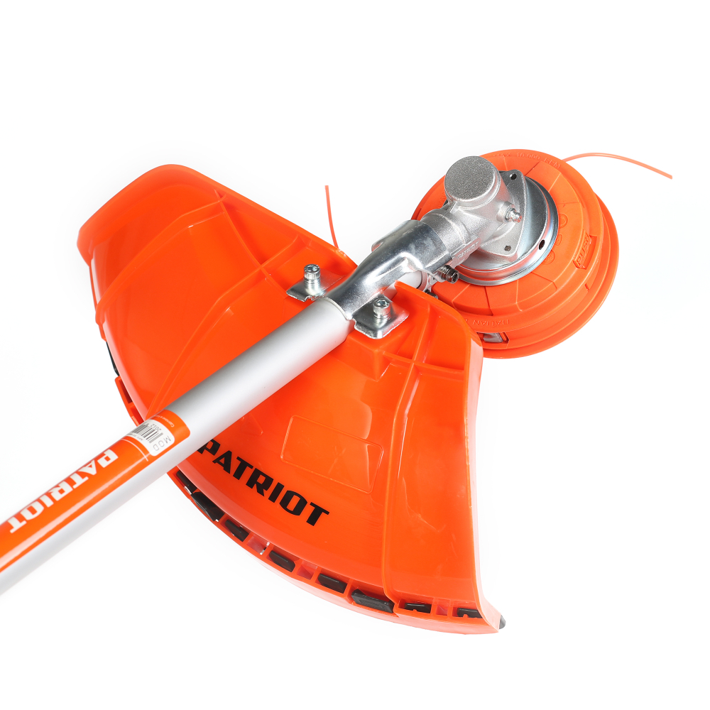 Специальный 4х-лопастной нож бензинового триммера с неразборной штангой PATRIOT PT 3555ES Country предотвращает разлет ядовитого сока и частей борщевика и амброзии.