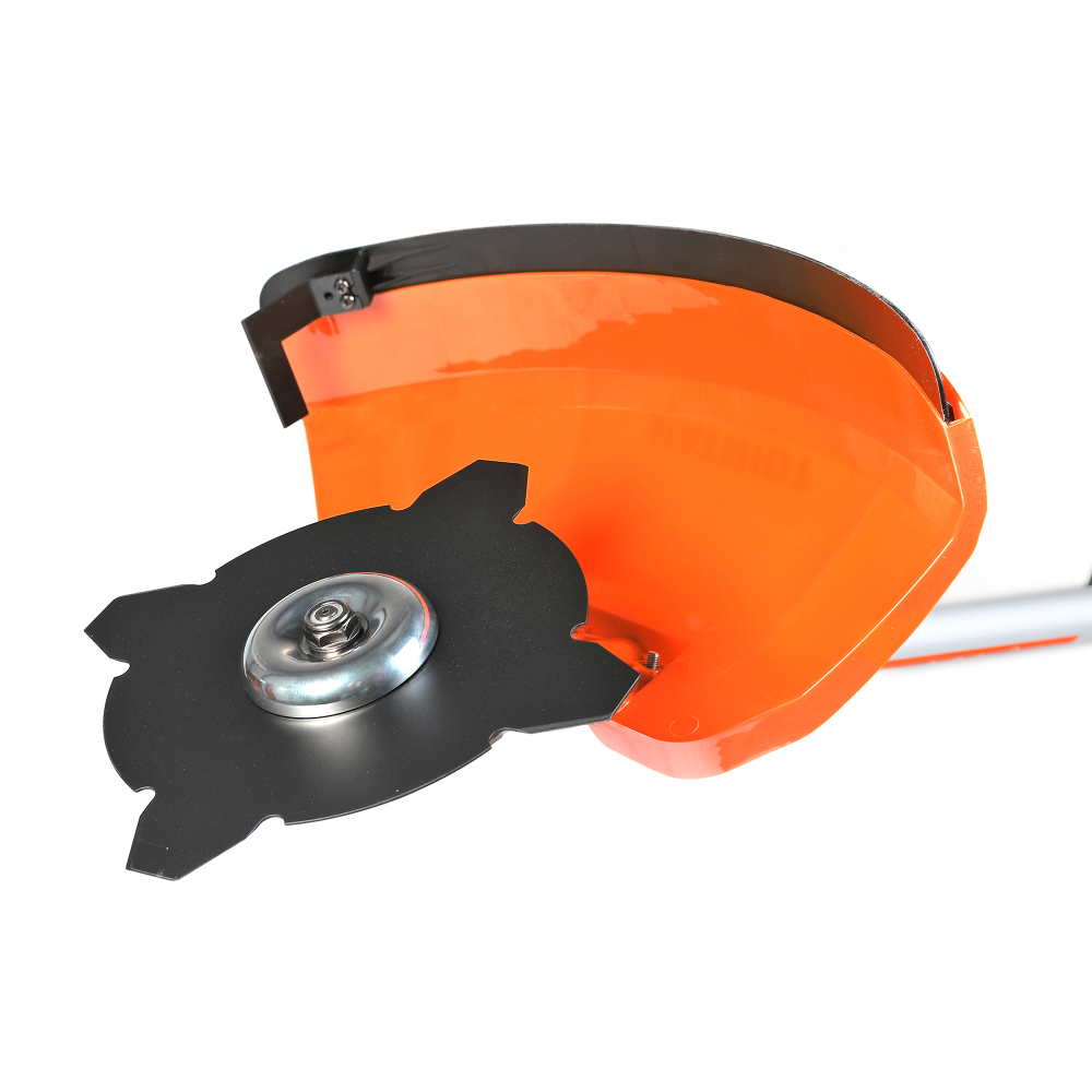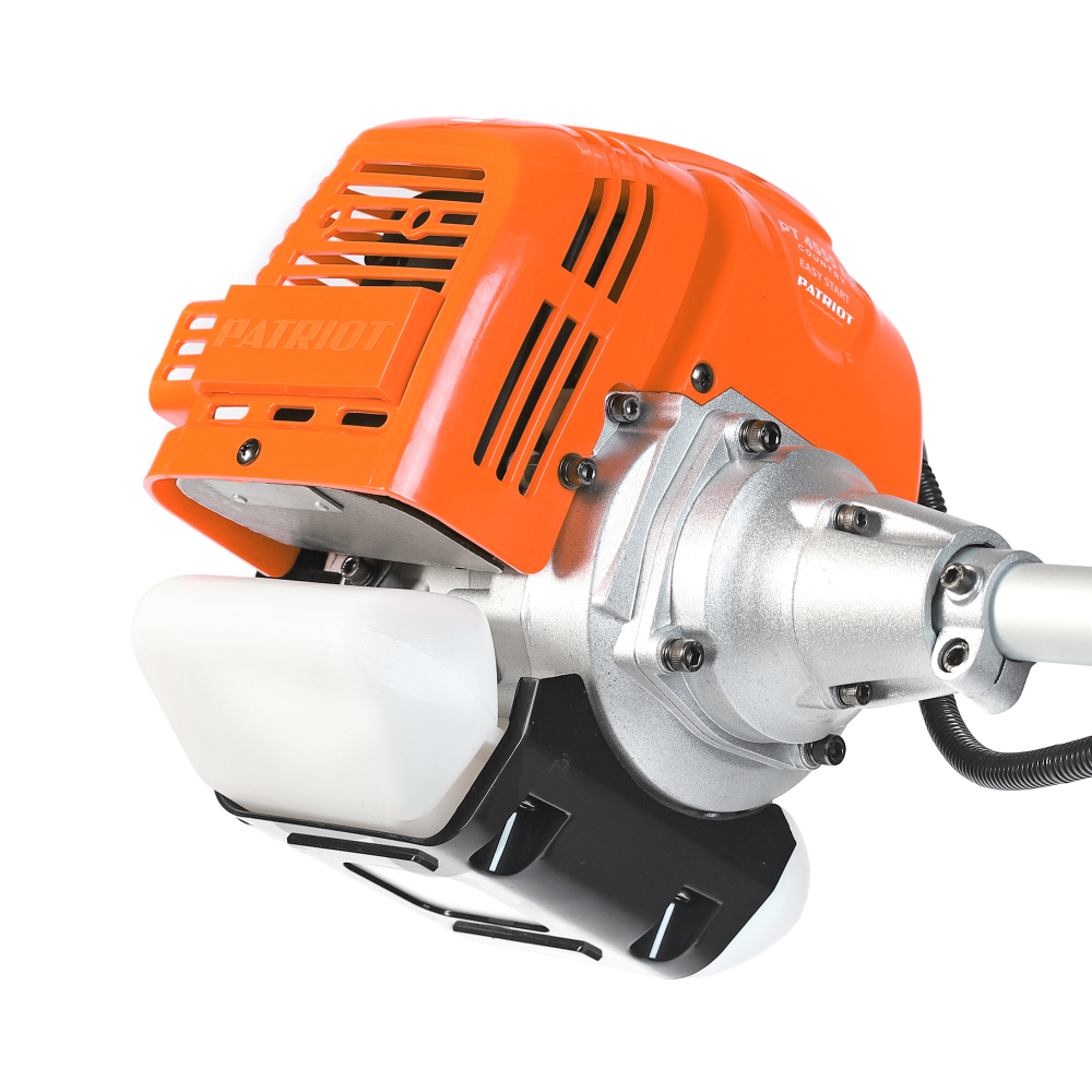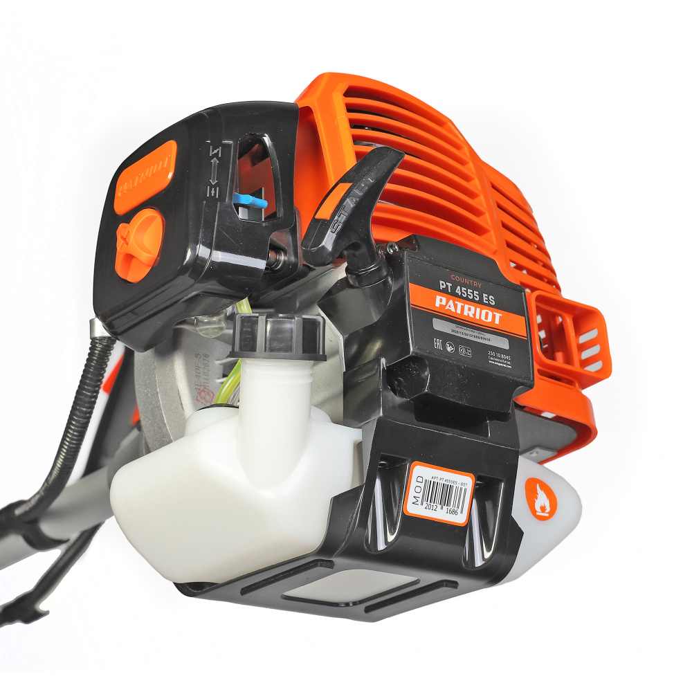 Специальный 4х-лопастной нож бензинового триммера с неразборной штангой PATRIOT PT 4555ES Country предотвращает разлет ядовитого сока и частей борщевика и амброзии.