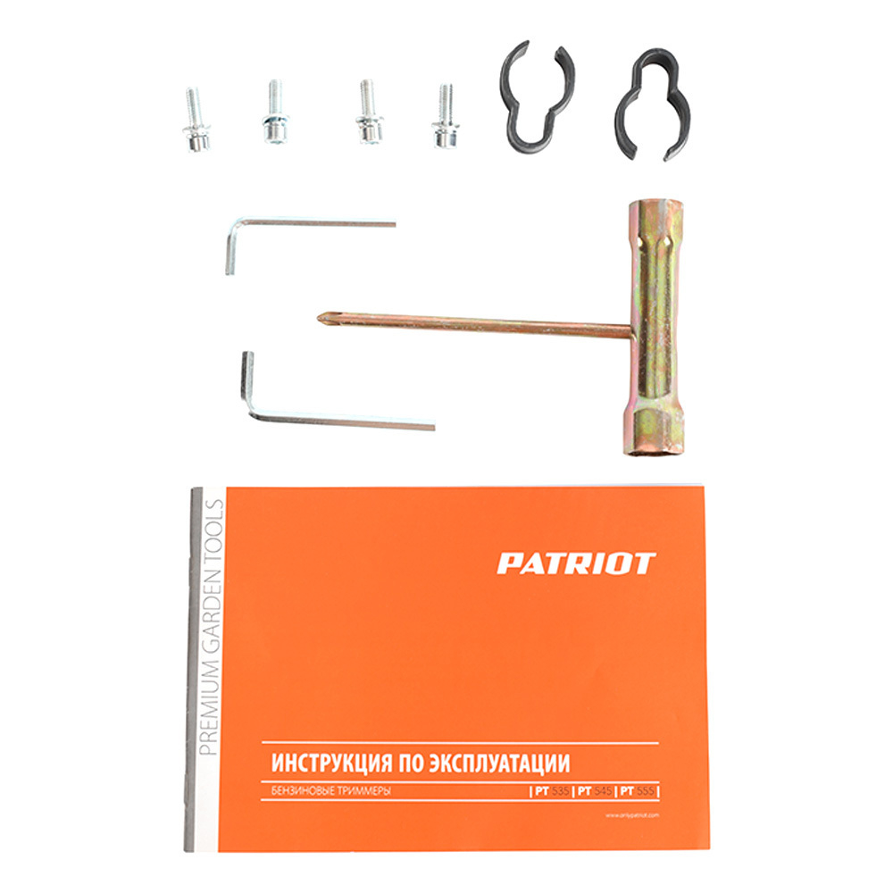 Двигатель в сборе с рукояткой; Трансмиссионный узел в сборе; Рукоятка; Защитный кожух с крепежной планкой; Набор ключей для сборки и обслуживания (опционально); Набор креплений для сборки; Комплект для установки триммерного ножа; Емкость для приготовления топливной смеси; Триммерная катушка; Ножи 40Т и 3Т; Ранцевый ремень; Инструкция по эксплуатации;