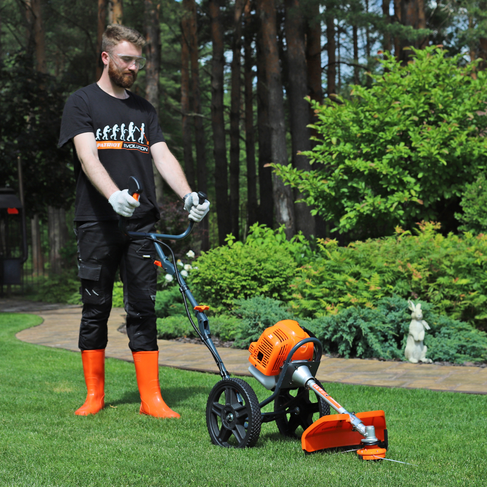 Триммер колесный Patriot PT 520 используется при обработке травяных зарослей возле деревьев, построек и на участках с неровным ландшафтом. Вращающаяся крышка позволяет использовать катушку, как опорное колесо, скашивая траву у самой земли. Надежный 2-х тактный двигатель оснащен системой легкого запуска Easy Start и предварительной подкачкой топлива. Благодаря жесткому валу и крепкому редуктору газонокосилка легко справляется с высокой травой и бурьяном. Большие колеса обеспечивают высокую проходимость. Органы управления расположены на U-образной рукоятке. Можно использовать с ножом или леской.